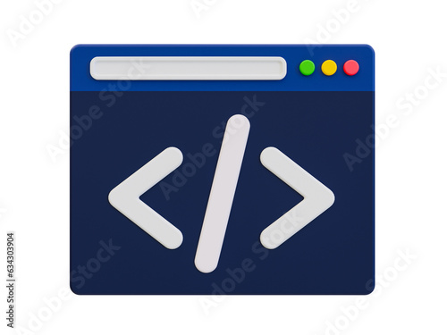 Wall mural 3d minimal program development concept. web browser with coding icon. 3d illustration.