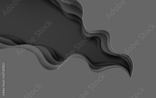 Wall mural : 3d paper art of abstract curve layer black background - paper art and cut wave surface - creative paper