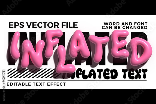 Wall mural 3d pink inflated 3d vector text effect. retro vibe inflated text style