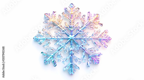 The watermark will not be included on Wall mural.: 3d plastic holographic snowflake - realistic 3d element of shimmering metallic snowflake isolated on