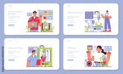 The watermark will not be included on Wall mural.: 3d printer software development web banner or landing page set -