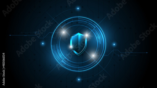 Wall mural 3d protected guard shield security concept security cyber digital abstract technology background pro