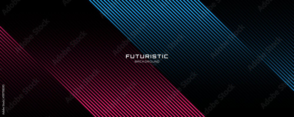 The watermark will not be included on Wall mural.: 3d red blue lines techno abstract background overlap layer on dark space with diagonal shape decorat