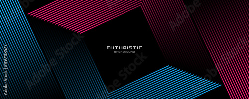 The watermark will not be included on Wall mural.: 3d red blue lines techno abstract background overlap layer on dark space with squares effect decorat