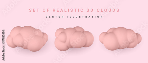 The watermark will not be included on Wall mural.: 3d red clouds - set of round cartoon fluffy clouds isolated on a light red background - vector illustr