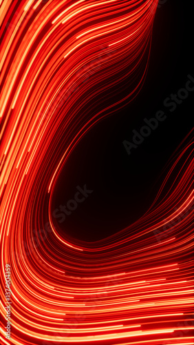 The watermark will not be included on Wall mural.: 3d render, abstract background of red neon lines and strings glowing in the dark - speed of light - fa