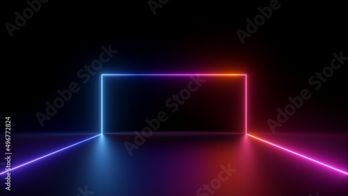 Wall mural 3d render, abstract curvy line glowing with colorful neon light over black background, frame with co - Wall murals Wall mural 3d render, abstract curvy line glowing with colorful neon light over black background, frame with co - Wall murals