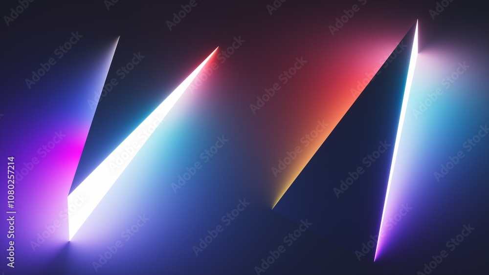 The watermark will not be included on Wall mural.: 3d render, abstract neon background, sharp triangular spikes and zigzag shapes glowing with bright l