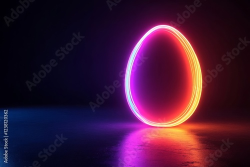 The watermark will not be included on Wall mural.: 3d render, abstract neon background with glowing lines in easter egg shape on black background -
