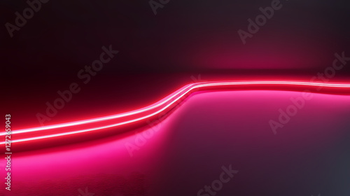 The watermark will not be included on Wall mural.: 3d render, red speed neon light trail on dark background, abstract motion curve light beam of fast m