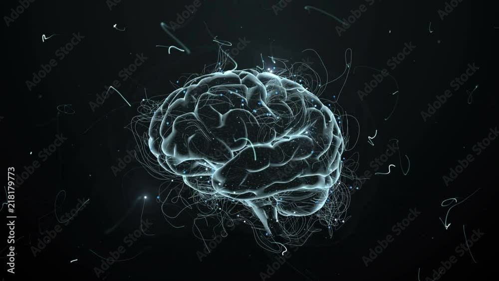 The watermark will not be included on Wall mural.: 3d render abstract background with brain that surrounded with particles with twisted trails - trails
