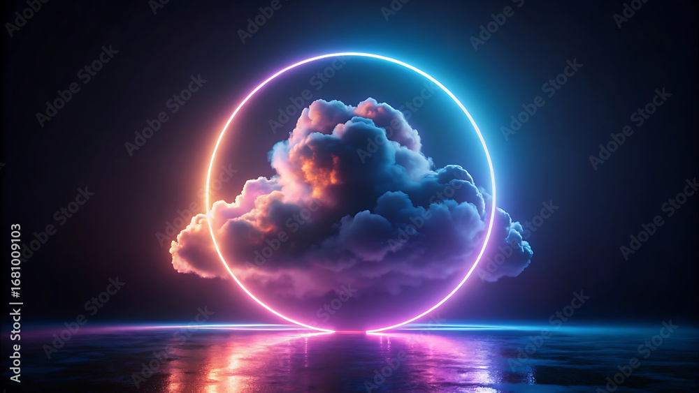 The watermark will not be included on Wall mural.: 3d render abstract cloud illuminated with neon light futuristic glowing digital background for moder