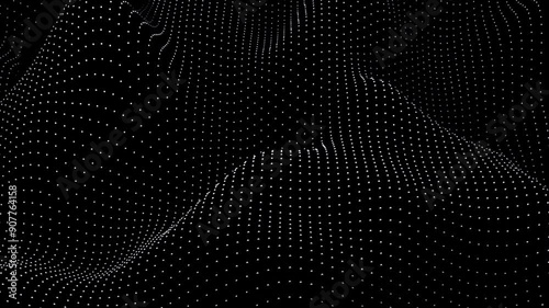 Wall mural 3d render abstract digital black and white wave of particles. futuristic point wave. technology back