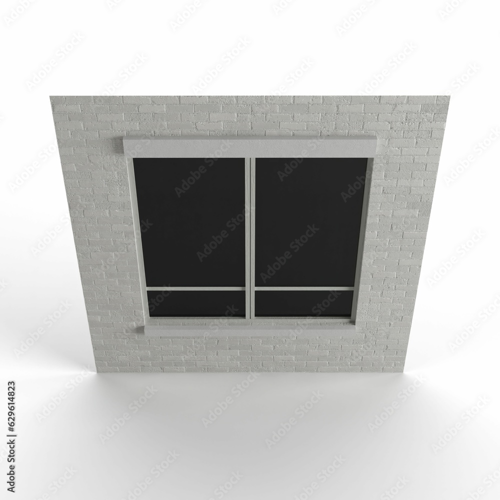The watermark will not be included on Wall mural.: 3d render of a gray brick building tile with a window isolated on the white background