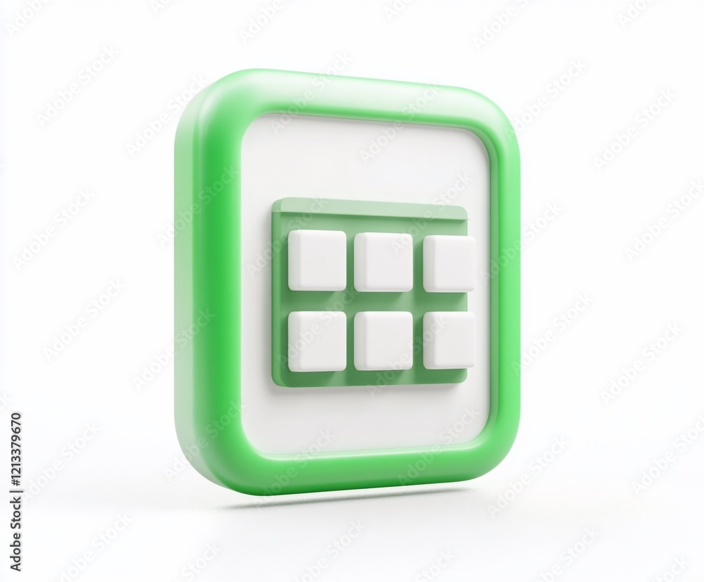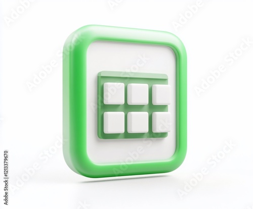 The watermark will not be included on Wall mural.: 3d render of a green square button with a white grid inside -