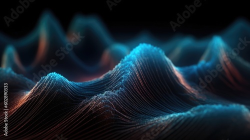Wall mural 3d render of a modern background with a blue flowing particles wave design.generative ai aig21. - Wall murals Wall mural 3d render of a modern background with a blue flowing particles wave design.generative ai aig21. - Wall murals