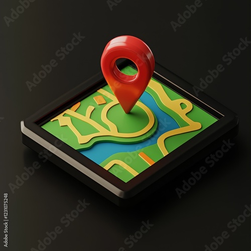 The watermark will not be included on Wall mural.: 3d render of a red location pin on a simplified map -