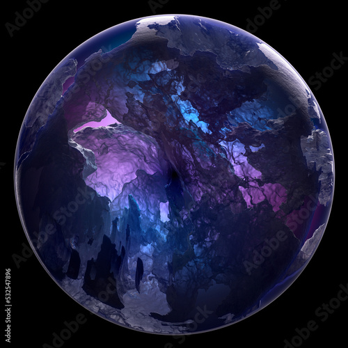 The watermark will not be included on Wall mural.: 3d render of abstract art 3d glass ball or sphere planet with translucent rough rock surface with bi