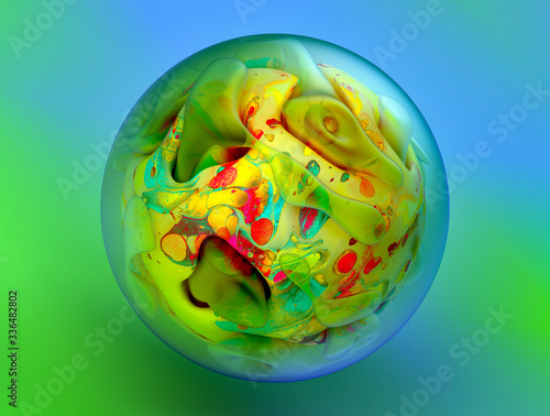The watermark will not be included on Wall mural.: 3d render of abstract art of surreal 3d glass ball with organic curve round wavy and smooth bio life
