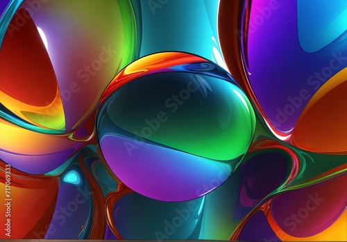 The watermark will not be included on Wall mural.: 3d render of abstract curved glass shapes with a purple and blue gradient isolated on a black backgr