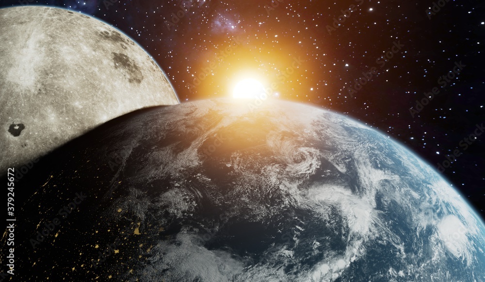 Wall mural 3d render of close up of earth with the moon closely behind.elements of this image furnished by nasa - Wall murals Wall mural 3d render of close up of earth with the moon closely behind.elements of this image furnished by nasa - Wall murals