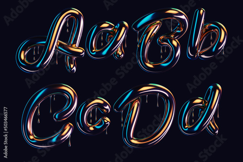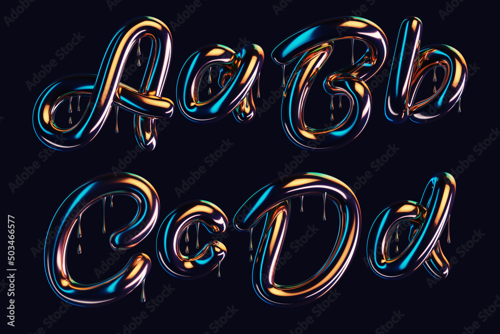 Wall mural 3d render of dark font with dripping glossy effect