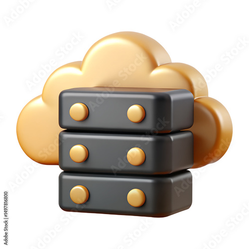 Wall mural 3d render of gold cloud and black database server icon isolated on transparent background - Wall murals Wall mural 3d render of gold cloud and black database server icon isolated on transparent background - Wall murals