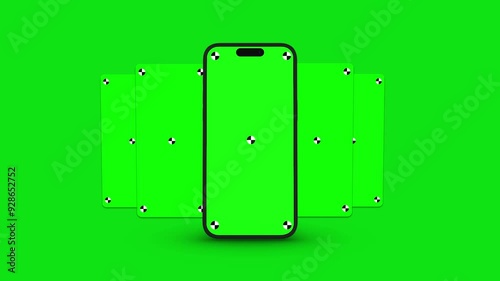 Wall mural : 3d render of smartphone with green screen and tracking marks – rotations and movements in vertical a