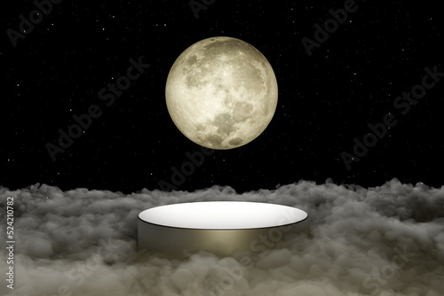 The watermark will not be included on Wall mural.: 3d render platform and natural podium background on the high clouds with moon at night for product d