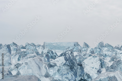 3d render platform background and empty round stage, ice podium on the ice rock in winter for producWall mural