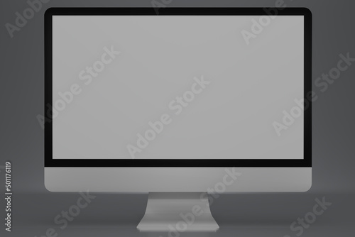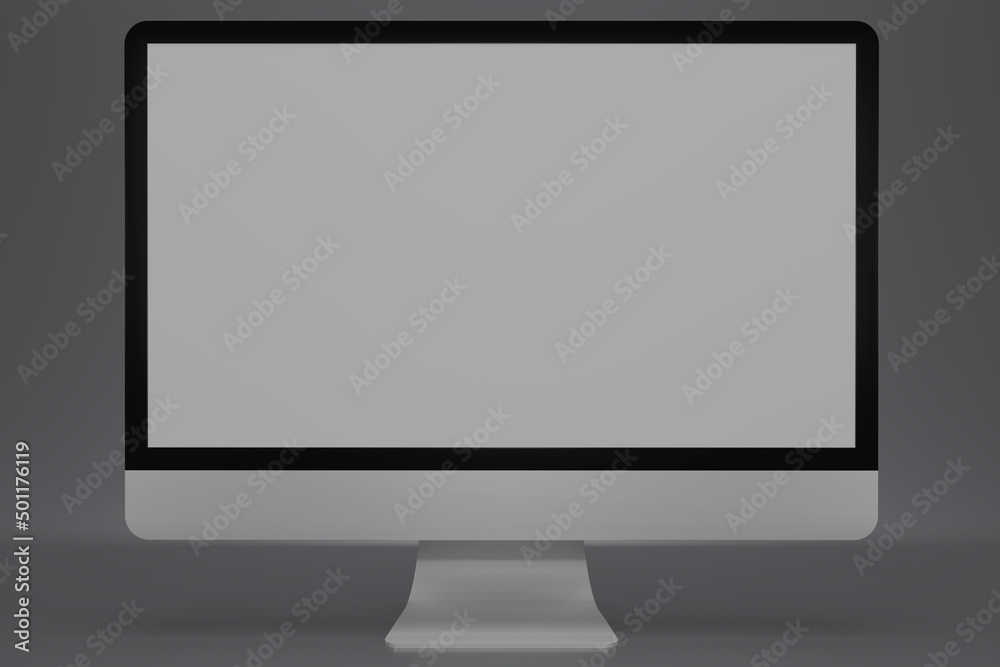 The watermark will not be included on Wall mural.: 3d render realistic computer monitor isolated on gray background - white display computer with alumin