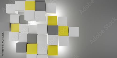 Wall mural 3d render square blocks of white, gray and yellow floating with light and shadow ,3d illustration