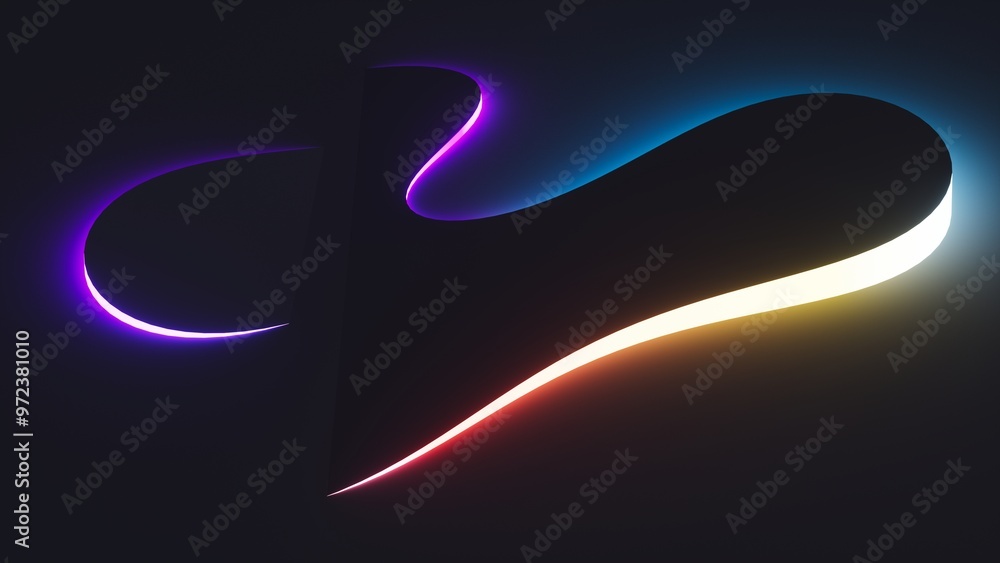 The watermark will not be included on Wall mural.: 3d render - abstract minimalist background with glowing round shapes and gradient neon light - trendy