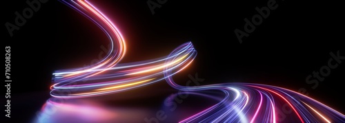 Wall mural 3d render. abstract panoramic background of curvy dynamic neon lines glowing in the dark room with f - Wall murals Wall mural 3d render. abstract panoramic background of curvy dynamic neon lines glowing in the dark room with f - Wall murals