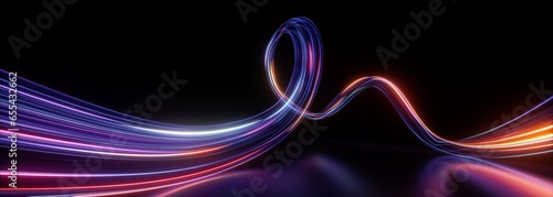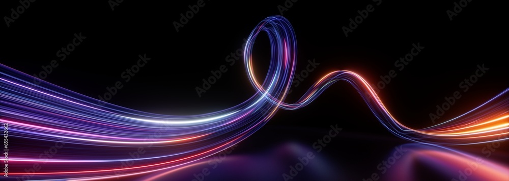 Wall mural 3d render. abstract panoramic background of twisted dynamic neon lines glowing in the dark room with - Wall murals Wall mural 3d render. abstract panoramic background of twisted dynamic neon lines glowing in the dark room with - Wall murals