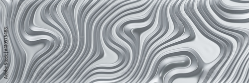 Wall mural 3d rendered abstract grey metallic background. wavy silver.