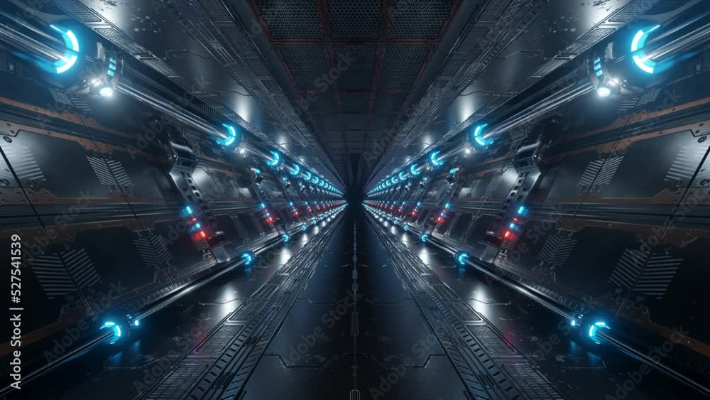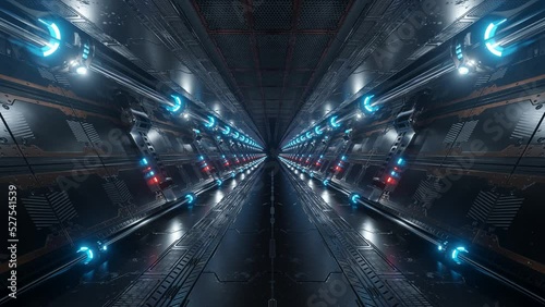 Wall mural 3d rendered animated loop of a spaceship background in space station. futuristic interior corridor w