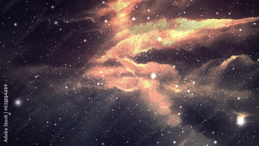 The watermark will not be included on Wall mural.: 3d rendered animation of a starry space with an orange nebula in the background