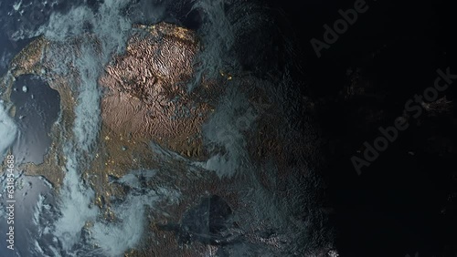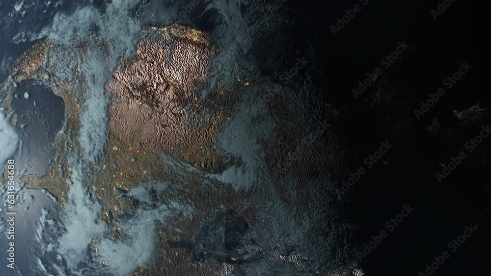 Wall mural 3d rendered animation of the illuminated cities on the planet earth in the empty space