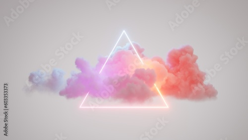 The watermark will not be included on Wall mural.: 3d rendering, abstract pastel background of colorful cloud and neon linear triangle, minimalist fant
