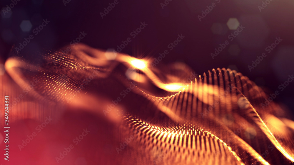 The watermark will not be included on Wall mural.: 3d rendering background of microworld or sci-fi theme with glowing particles form curved lines, 3d s