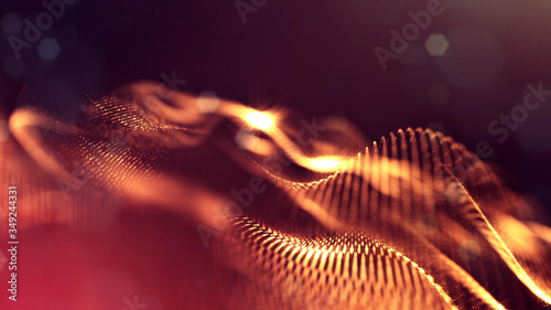 Wall mural 3d rendering background of microworld or sci-fi theme with glowing particles form curved lines, 3d s