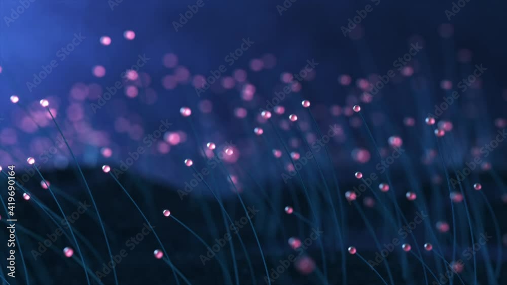 Wall mural 3d rendering colorful particle line like a flower grow. glowing lines and light particles on dark bl