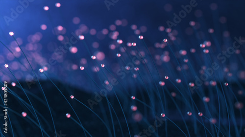 Wall mural 3d rendering colorful particle line like a flower grow. glowing lines and light particles on dark bl
