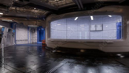 The watermark will not be included on Wall mural.: 3d rendering of a futuristic sci-fi interior environment with containment cell -