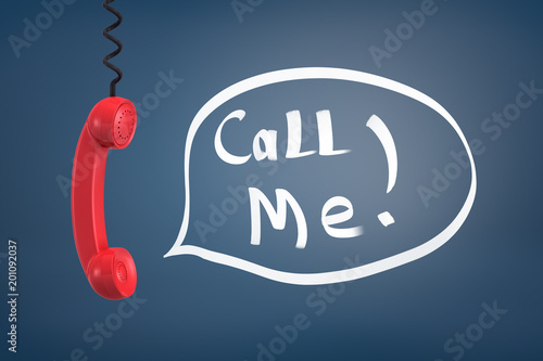 The watermark will not be included on Wall mural.: 3d rendering of a red retro phone handle hanging down on a coiling cord near words call me inside a
