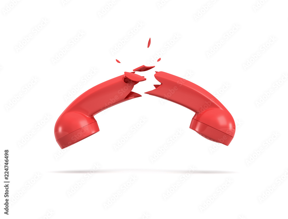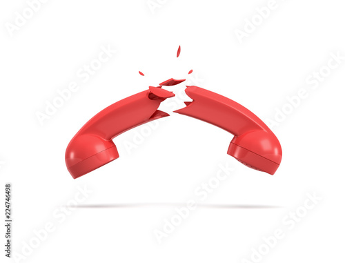 The watermark will not be included on Wall mural.: 3d rendering of a red retro phone receiver broken in half on a white background -