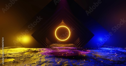 Wall mural 3d rendering of a solar eclipse seen through large rhombic shapes in the space