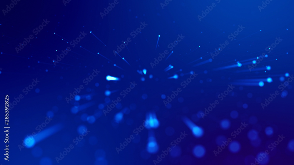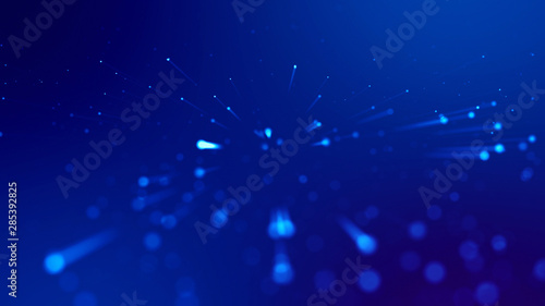 Wall mural : 3d rendering of abstract blue background with glowing particles like micro world science fiction wit