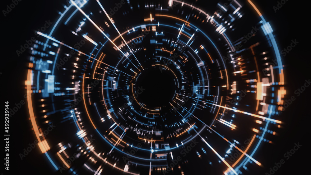Wall mural 3d rendering of abstract fast moving stripe lines with glowing light flare. digital binary data. con